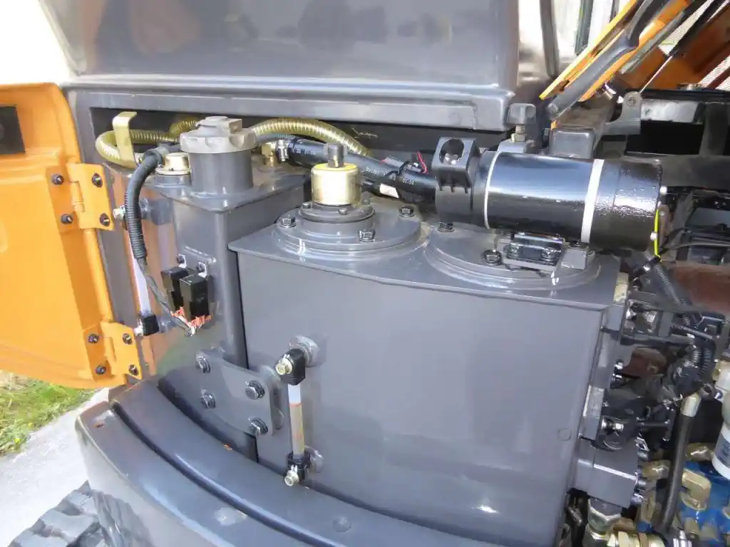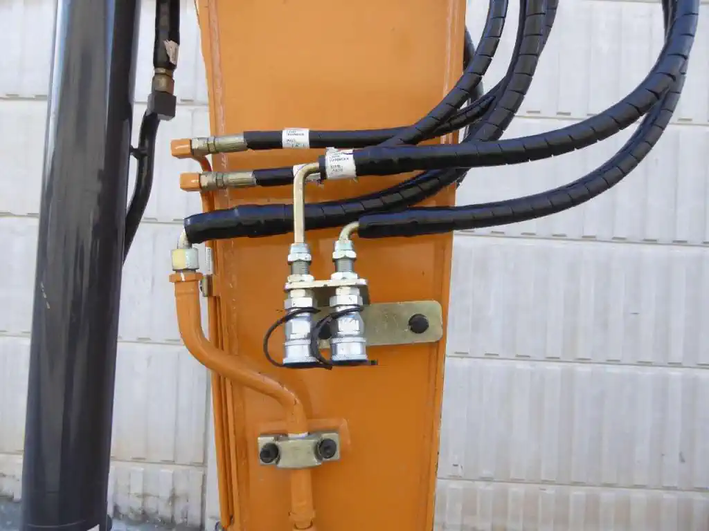 Équipements et fonctionnalités — Clapets de sécurité garantissant une protection optimale. Ligne pince/rotation pour travaux nécessitant une manipulation précise. Ligne marteau pour travaux de démolition et cassage. Transmission hydrostatique assurant une maniabilité optimale. Pompe de ravitaillement électrique facilitant l’entretien. Cabine fermée avec chauffage, climatisation, siège chauffant, Bluetooth et radio. Ligne pour attache rapide hydraulique permettant le changement d’accessoires. Deux godets de terrassement de 400 et 700 mm. Balancier long de 1900 mm offrant portée étendue.