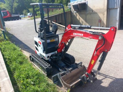 Mini pelle compacte Coltrax CX20 adaptée aux travaux de terrassement et d’aménagement en espaces contraintes. Machine d’occasion vendue avec trois godets, entièrement révisée avec entretien suivi.