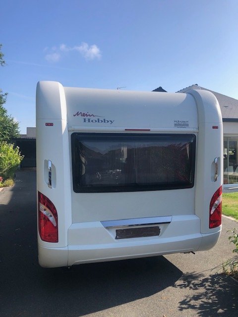 Caractéristiques techniques — Marque : Hobby; modèle: 540 UFF; année: 2019; type : caravane avec auvent ; essieu : simple ; longueur totale : 7 460 m ; PTAC : 1 500 kg ; couchages : 4 ; équipements : éclairé central, réfrigérateur, eau chaude, chauffage air pulsé gaz, toilettes ; réservoir d’eau : 40 L ; réservoirs d’eaux usées; accessoires : déplacer‑caravane, magasin avec auvent, porte‑vélos, roue de secours.